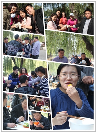 這邊美食還在回味中,那邊的節(jié)目表演已經(jīng)開場了,銷售一部超越組的帥小伙云卿一亮相就震撼全場,楊宗緯的《洋蔥》模仿的象模象樣。歌聲蕩漾,婉轉(zhuǎn)飛揚,美食正在繼續(xù)中,廚藝比賽一結(jié)束,時鐘已嗒嗒地跑到了中午11:00整,大規(guī)模的團隊宴席就正式開始啦。小組成員們馬不停蹄,燒烤,爆炒,涼調(diào),拼盤,個個都使出拿手絕活,大有一種不把現(xiàn)場“熱翻天就不罷休“的勢頭,除夕年夜飯的感覺盡然給烘托了出來,空氣里滿是讓人味蕾開放的各色香味兒。上菜了,上菜了,一道道精致的菜肴象一件件精美的藝術(shù)品, 成員們個個大快朵頤,觥籌交錯,美食,歌聲,小品,歡笑,各種逗趣兒,這溫馨的現(xiàn)場時光,成員們個個都忘記了疲倦,忘記了年齡,忘記了曾經(jīng)的挫折,忘記了生活路上太多太多的沉重,取而代之的是激情,是堅韌,是快樂,是勇敢,是振奮,是沖刺,是自信,是對未來美好的憧憬和向往………